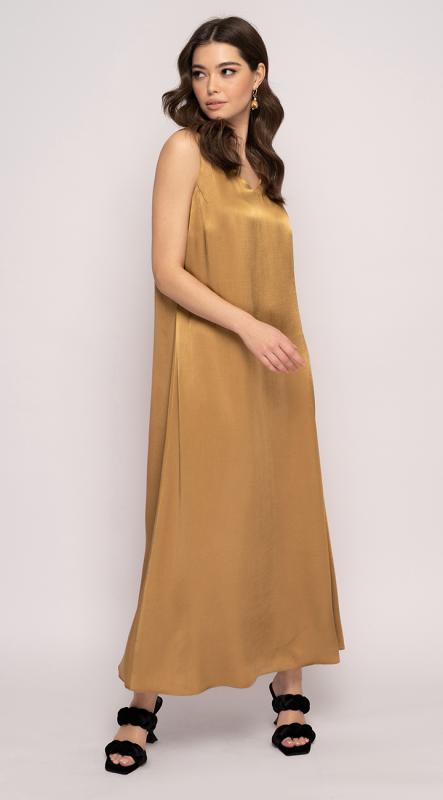 Эффектное платье А-силуэта из струящейся ткани с эффектом "