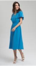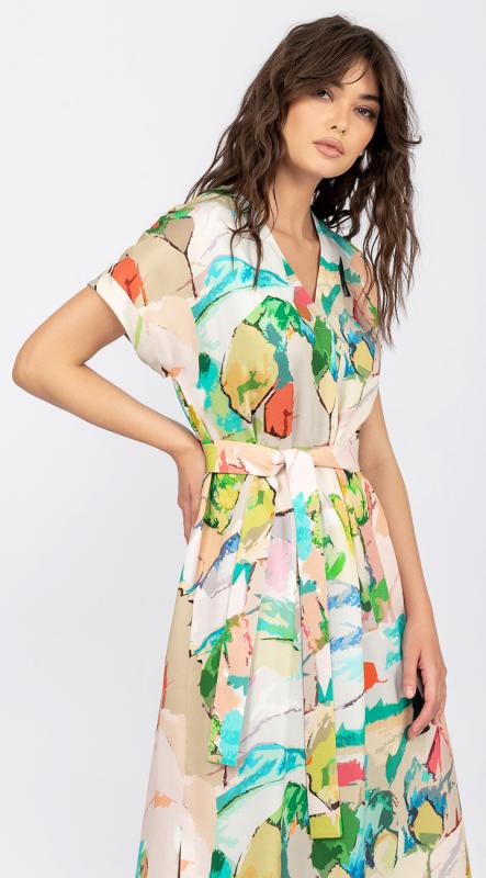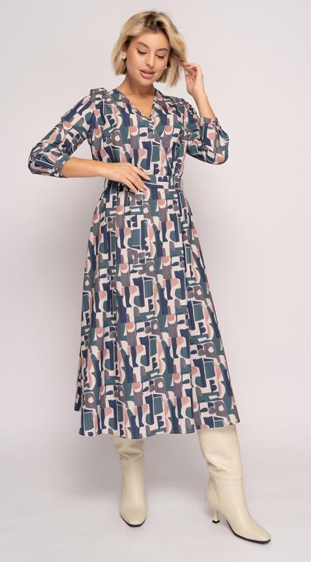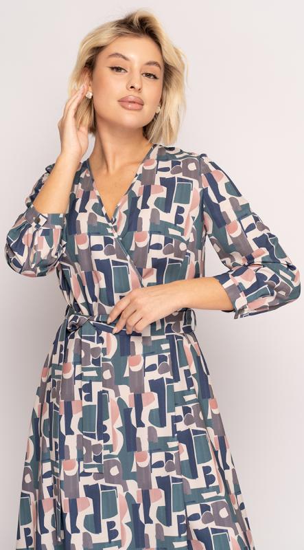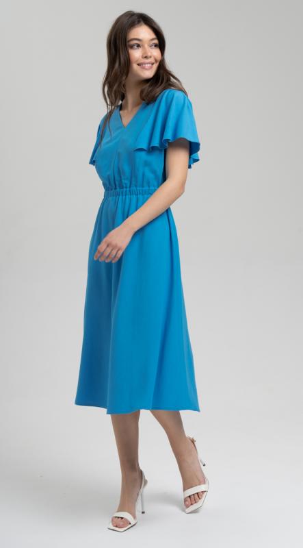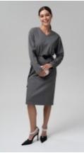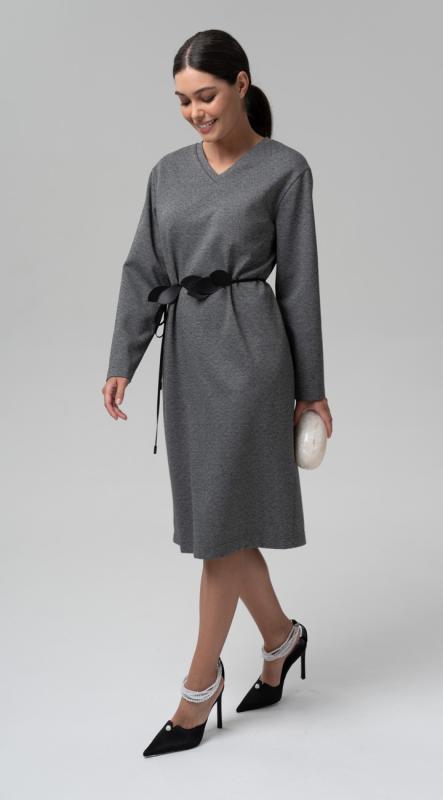 - великолепным образом дополнит базовый гардероб. V-образный вырез эффектно подчёркивает шею и слегка удлиняет её. Втачной рукав 3-4 на притачной манжете. Резинка на талии сформирует идеальный женственный силуэт песочных часов. Платье дополнено съемным поясом.