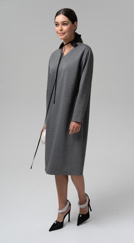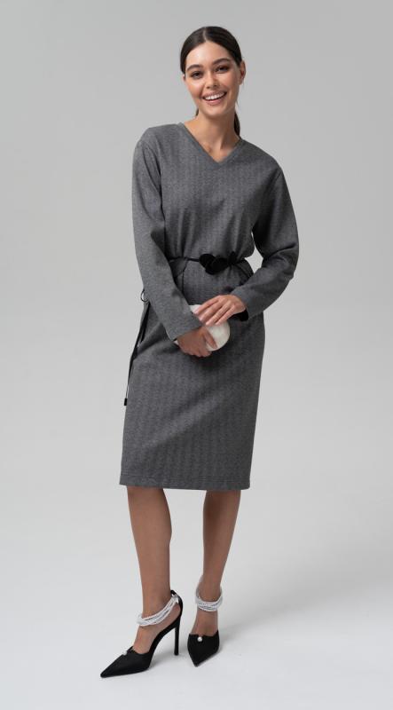Платье прямого силуэта с V-образным вырезом из трикотажного полотна - станет стильным решением для любого случая. Рукав втачной полной длины. Добавит эксклюзивности оригинальный пояс-чокер из экокожи.