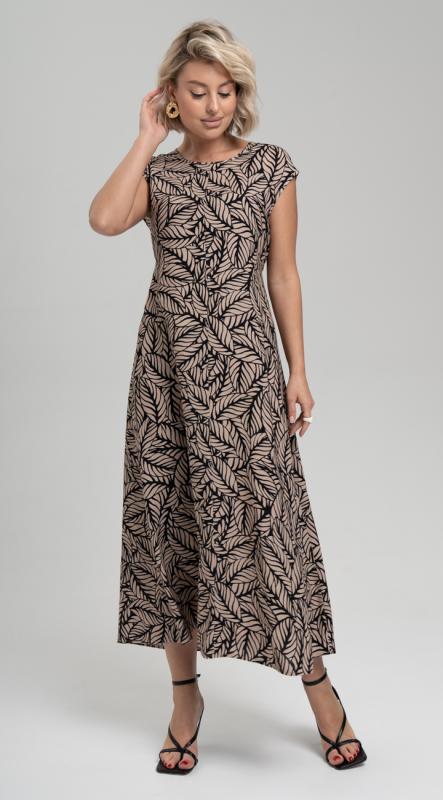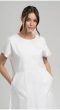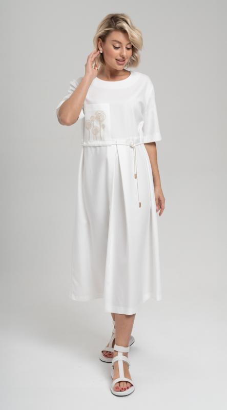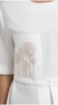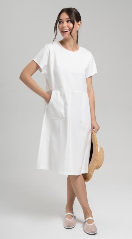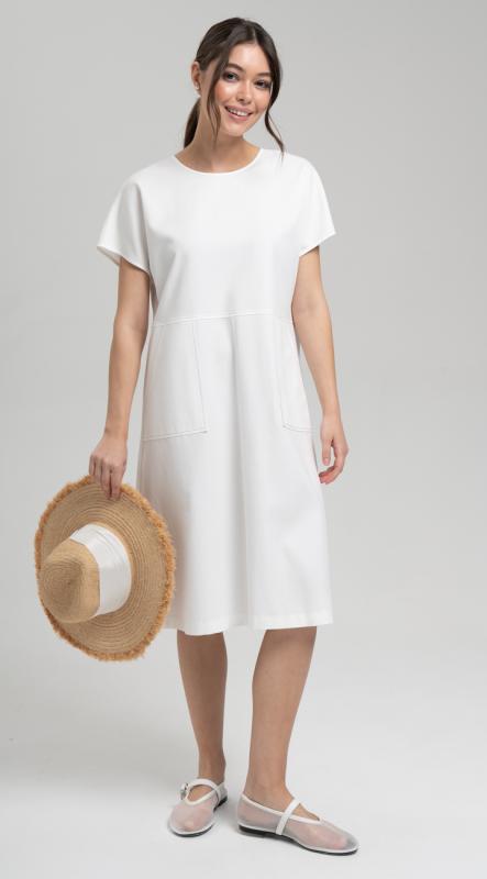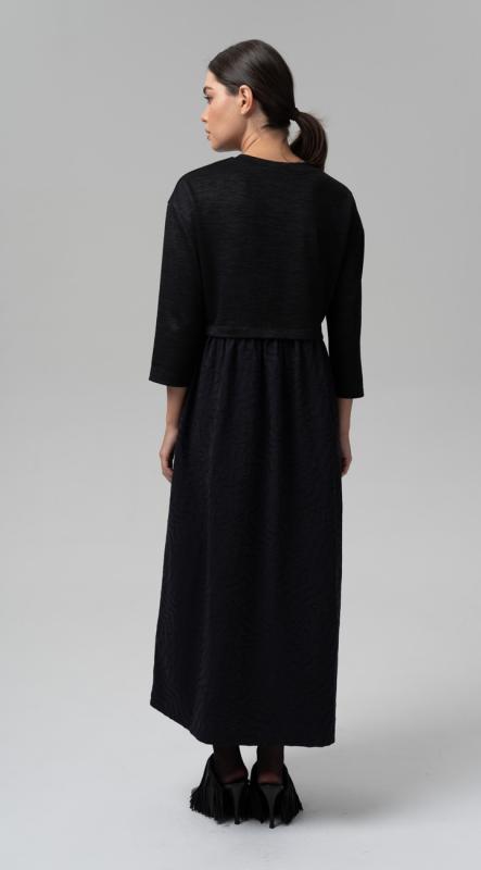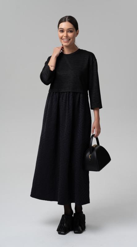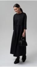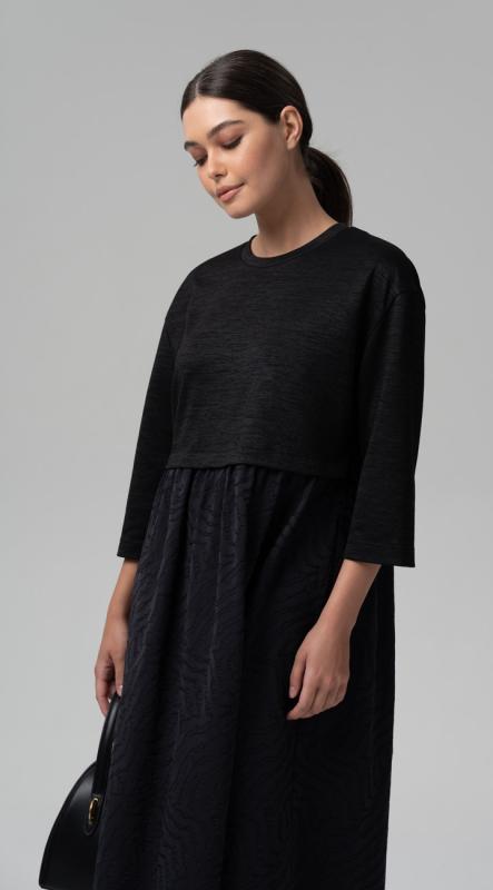 Комбинированное платье свободного кроя со спущенной линией плеча и отрезной юбкой выше талии из трикотажного полотна в сочетании с плательным жаккардом - прекрасно подойдет для создания образов в стиле casual. Идеальный силуэт для любой фигуры и безупречный стиль. Рукав 3-4.