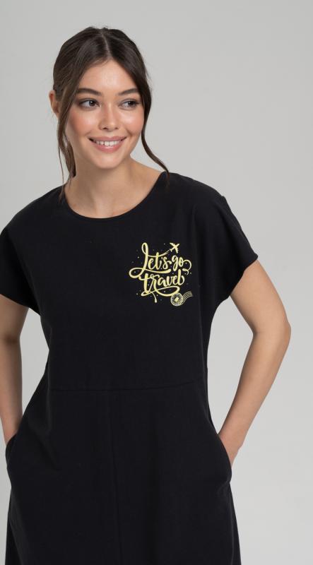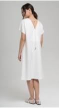 Платье А-силуэта длиной до колена, со спущенной линией плеча и с V-образным вырезом по спинке из хлопка с добавлением волокон льна - один из фаворитов летней коллекции, и это не удивительно. Ведь оригинальный крой делает его абсолютно комфортным и позволяет садиться на любую фигуру. Добавит эксклюзивности термотрансфер и шнур по спинке контрастного цвета.