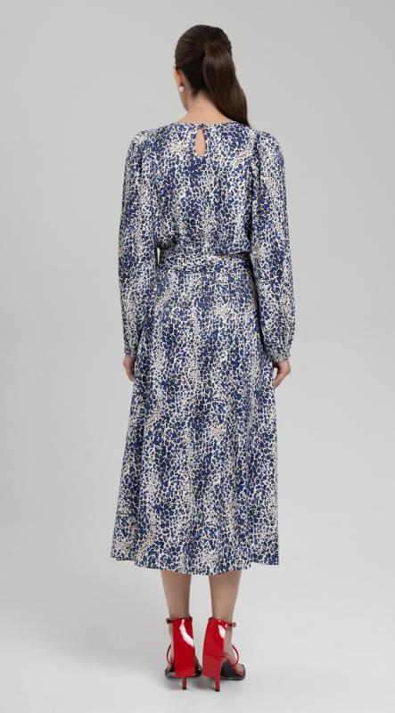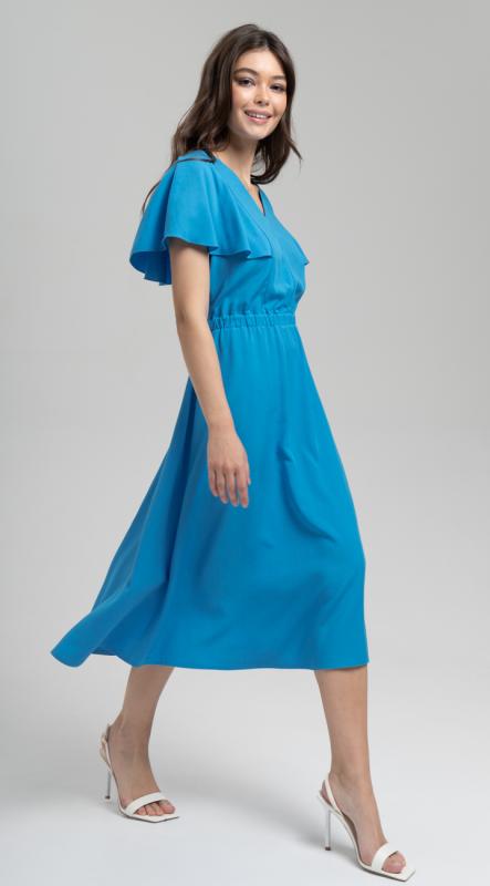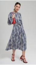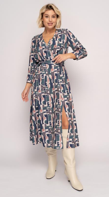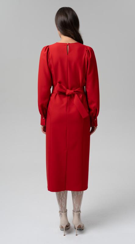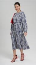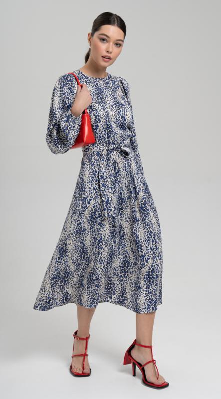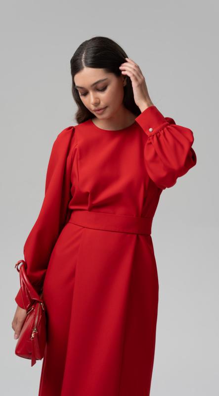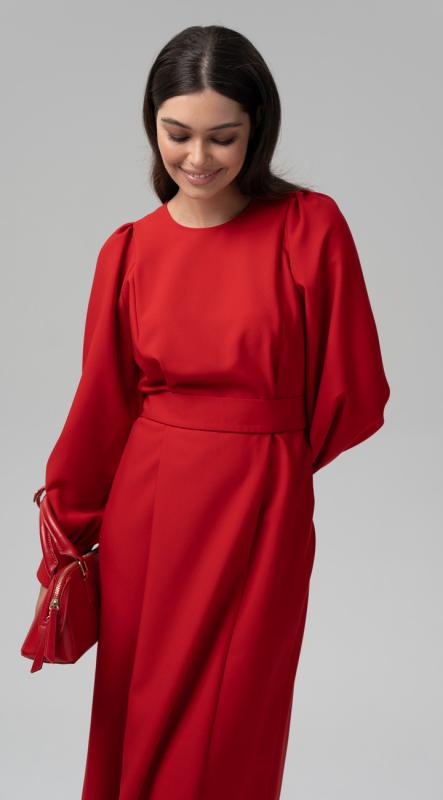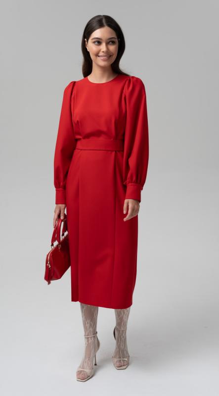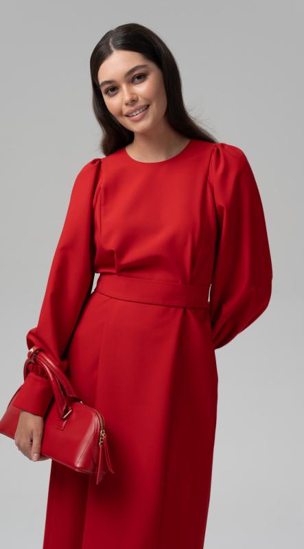 Яркое и безупречно стильное платье длиной midi из поливискозы подчеркнет женственность и без всяких сомнений сделает ваш образ эффектным и незабываемым! Платье отлично садится по фигуре. Его стоит примерить лишь раз, и оно станет вашей любимой вещью. Объемные фантазийные рукава полной длины на высокой манжете. Линию талии можно подчеркнуть съемным поясом.