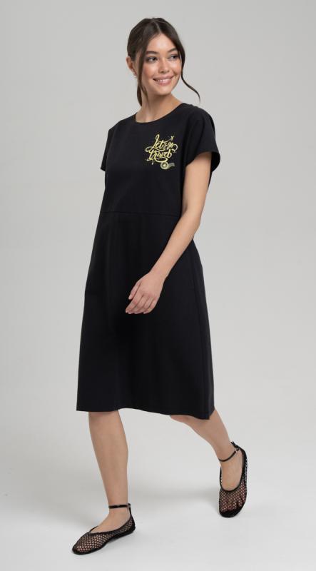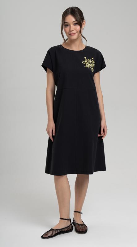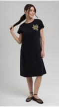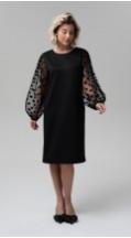 Платье прямого покроя из костюмной поливискозы с легким мерцанием в сочетании с контрастной тесьмой и термотрансфера из черного бархата - поможет создать стильный и уверенный образ. Рукав рубашечного типа полной длины. Потайная молния в среднем шве.