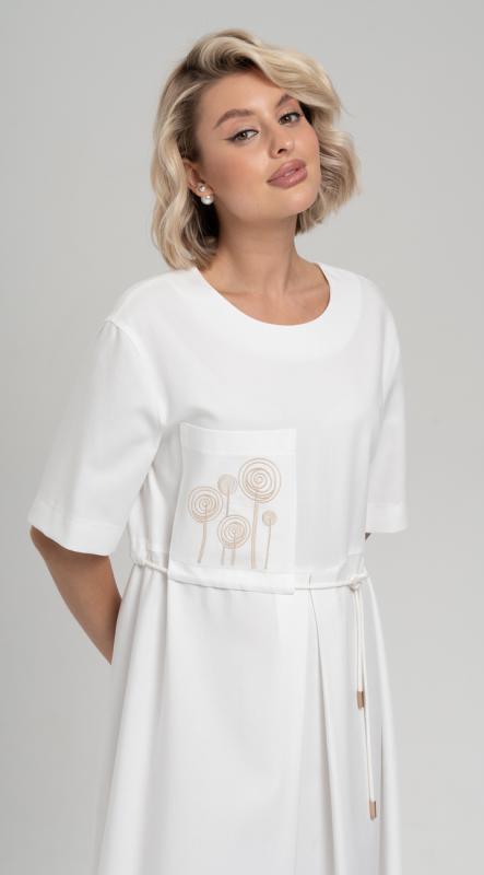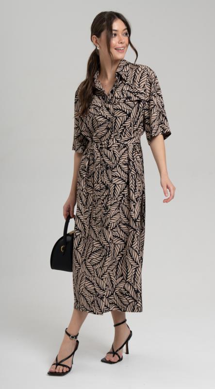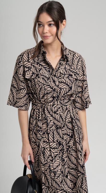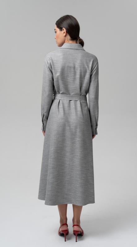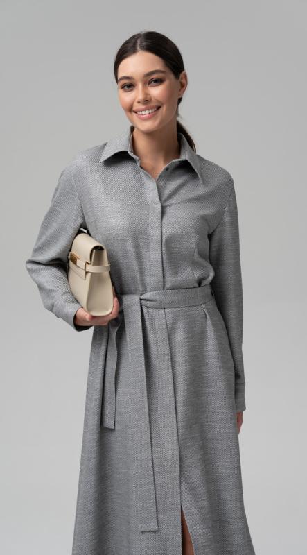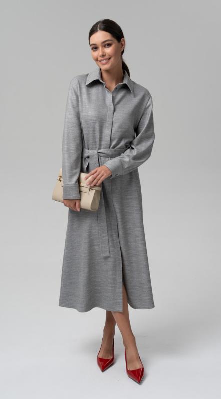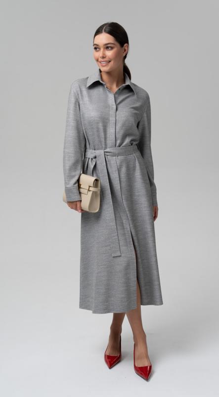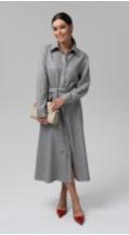 Платье-рубашка длиной midi, отрезное по линии талии и слегка расклешенное с разрезом по переду - исполнено с учетом всех последних тенденций моды. Комфортный рукав рубашечного кроя полной длины на притачной манжете. Застежка на потайные кнопки. В комплекте съемный пояс.