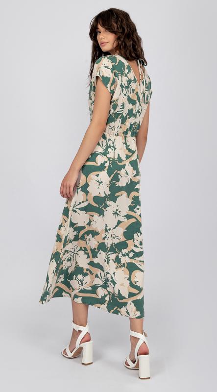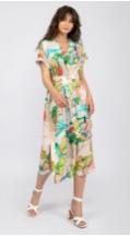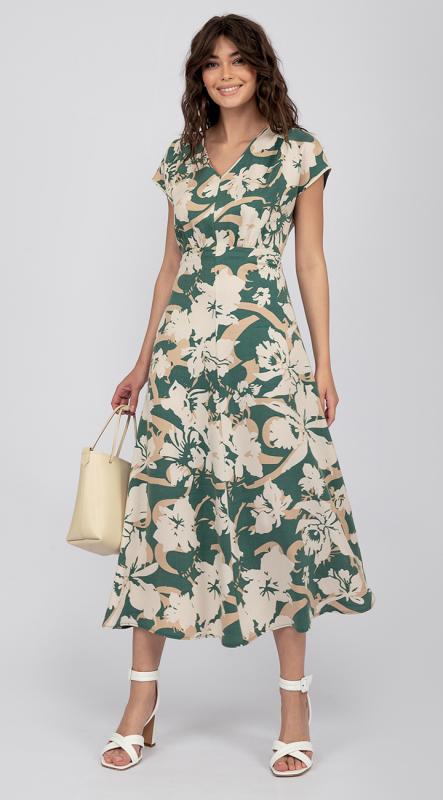 Нежное платье длиной midi полуприлегающего силуэта с V-образным вырезом и красивым подрезом под грудью и спущенным плечом из материала Tencel® с флористическим принтом – must have последних сезонов. Оно завораживает с первого взгляда, подчеркивает романтичность и хрупкость своей обладательницы, а также дарит уверенность в женской привлекательности. Резинка по талии на спинке формирует идеальный женственный силуэт песочных часов.