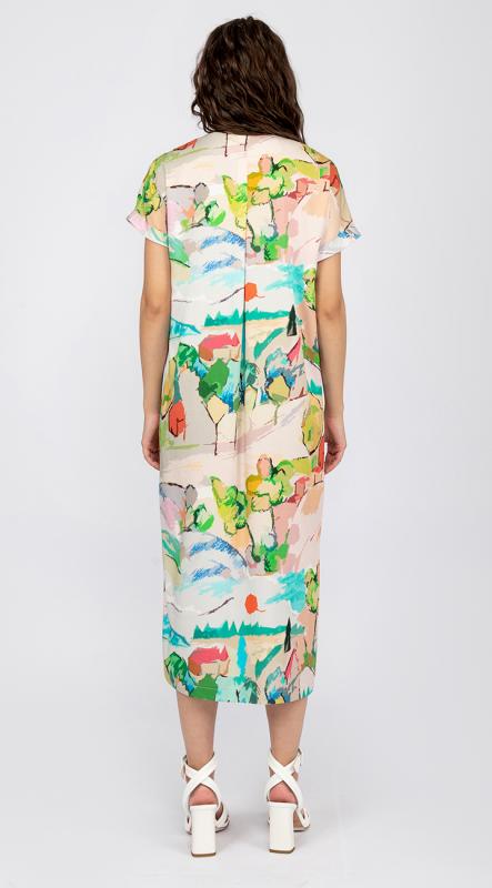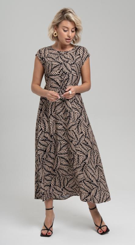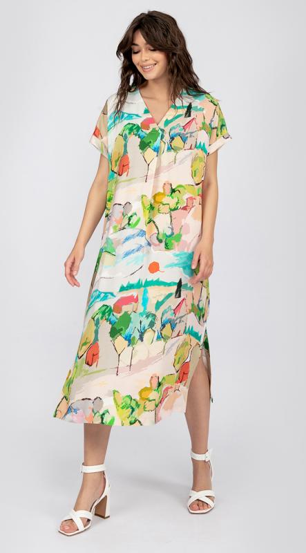 Прямое платье с цельнокроенным коротким рукавом и высокими разрезами длиной maxi - обеспечит комфортную посадку и выгодно подчеркнет достоинства фигуры. А уникальное сочетание льна с добавлением волокон вискозы и сделают это платье комфортным и универсальным в жаркий летний день! Добавит настроения - оригинальный принт по низу платья.