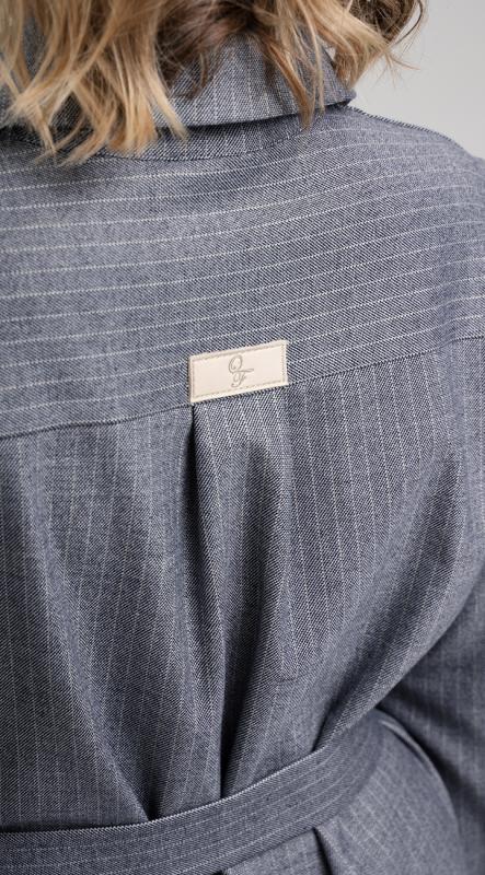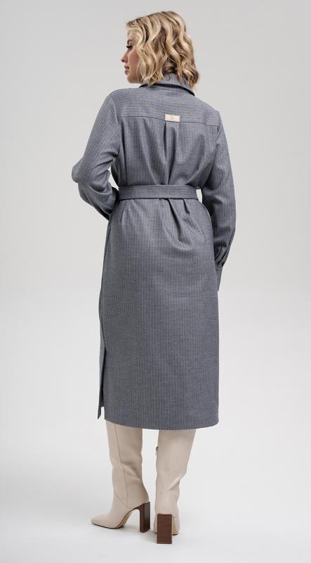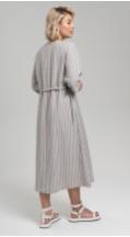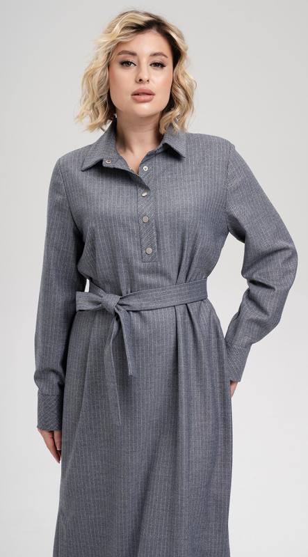 Платье-рубашка прямого силуэта из поливискозы в полоску - соблюдает баланс между строгостью и современностью. Платье с отложным воротником на стойке, с притачной планкой на кнопках, с кокеткой по спинке. Рукав втачной полной длины на притачной манжете. Боковые швы платья заканчиваются классическими шлицами. Платье дополнено съемным поясом.