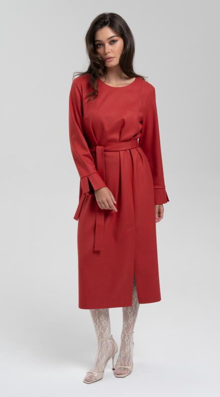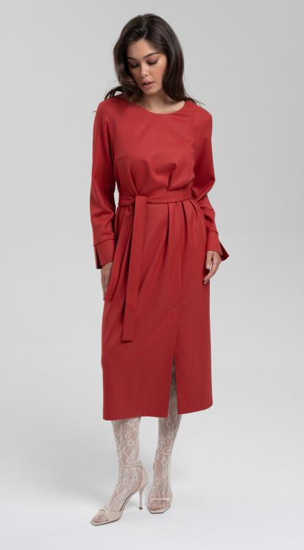 Эффектное платье прямого силуэта с цельнокроенным рукавом и V-образным вырезом - прекрасно подойдет для создания образов в стиле casual. Уникальное сочетание стиля и комфорта. Высокие разрезы по бокам-выгодно подчеркнет достоинства фигуры. Закончит образ пояс из основной ткани.