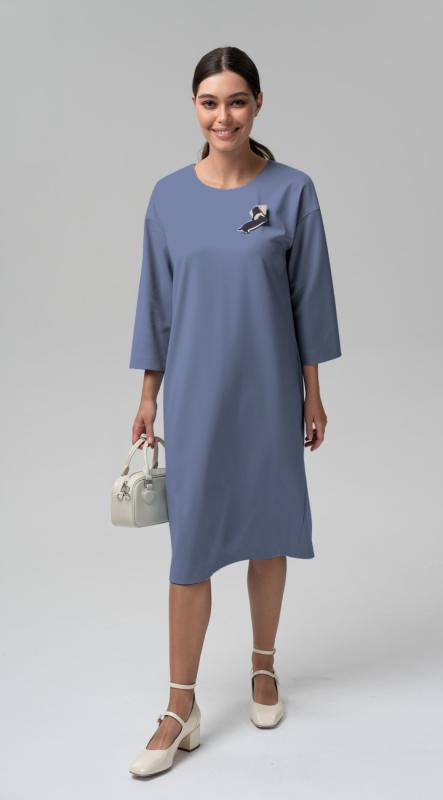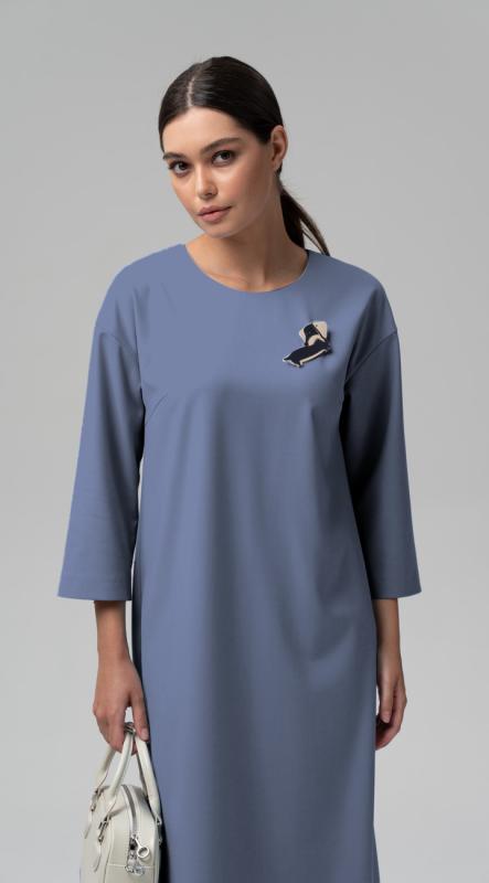 Лаконичная модель из костюмной поливискозы длиной до колена. Для тех, кто любит минимализм и строгие силуэты. В зависимости от добавленных аксессуаров платье может стать нарядным элементом гардероба или основой офисного дресс-кода. Рукав длиной 3-4. В комплекте оригинальная брошь ручной работы. Застежка на потайную молнию в среднем шве спинки.
