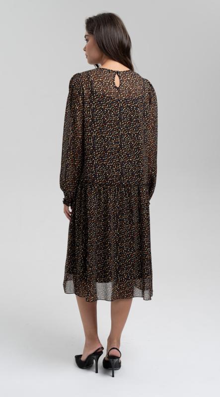 -шифона на подкладе - станет самым легким способом создать романтичный, слегка кокетливый образ. Рукав втачной полной длины на эластичной манжете. Застежка по спинке на две пуговицы и навесные петли. Платье на притачном подкладе.