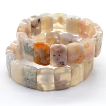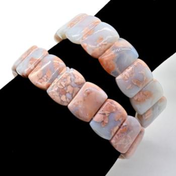 •Браслет из агата сакура в форме заоваленного прямоугольника.