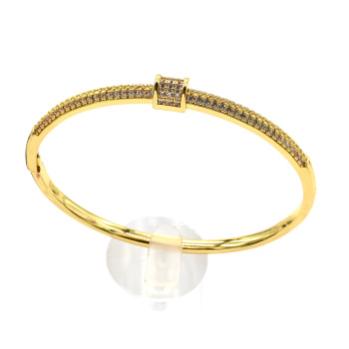 •Браслет-кольцо - это стильное украшение, которое станет идеальным дополнением как к вечернему, так и к дневному образу. Изготовлен из латуни с позолоченным покрытием и дополнен сверкающими фианитами.