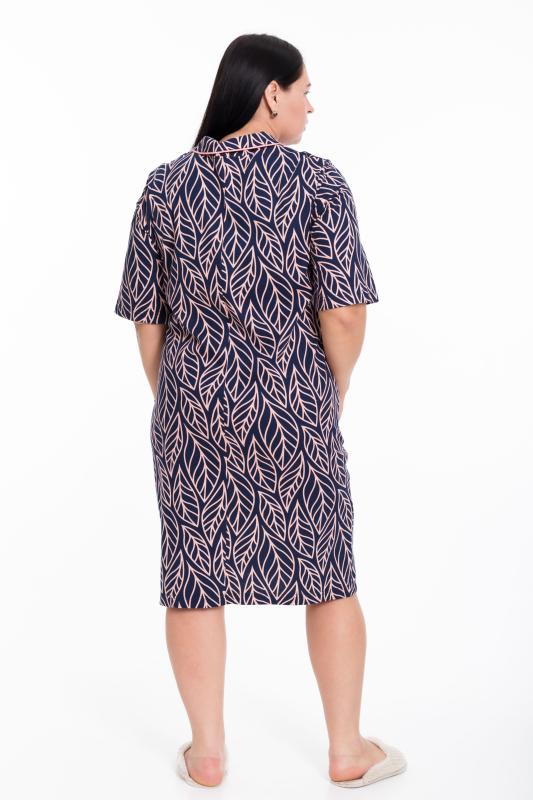 Женский халат из кулирки, выполненный из 100% хлопка в синем цвете с набивным рисунком листьев - уютный и стильный. Халат с отложным воротником прямого кроя. Длина рукавов до локтя обеспечит комфорт и свободу движения. Застежка на молнию делает надевание и снятие халата быстрым и удобным. Наличие карманов по бокам на полочках добавляет удобства и функциональности. Кант в цвет рисунка, отделывающий воротник и верх карманов, придает халату изысканный вид и дополнительный акцент к дизайну. Этот женский халат станет отличным выбором для повседневного использования дома. Изготовленный из натурального материала, он будет приятным на ощупь и дышащим для кожи. Удобство, стиль и качество делают этот халат идеальным для отдыха и релаксации.