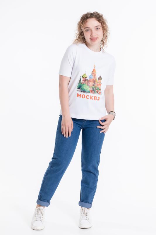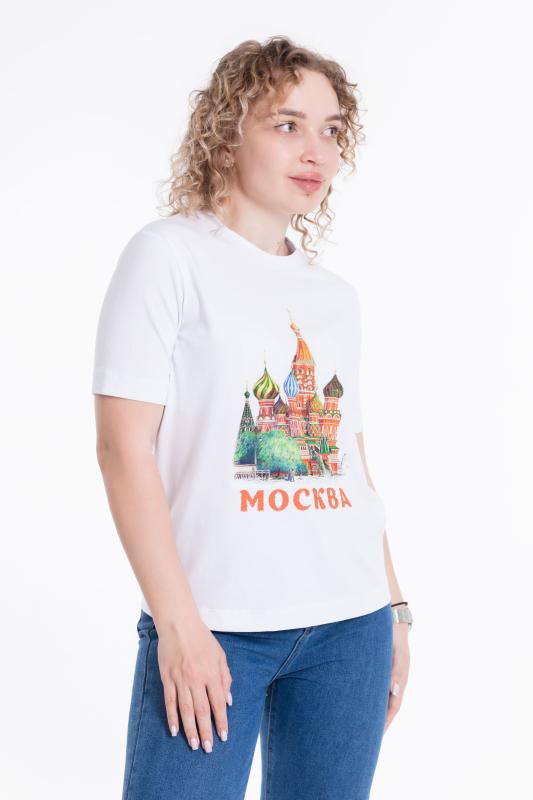 Женская футболка выполнена из однотонной кулирки с лайкрой. С коротким рукавом и круглым вырезом горловины, оформленным планкой. Размерный ряд: 42-62.