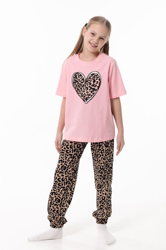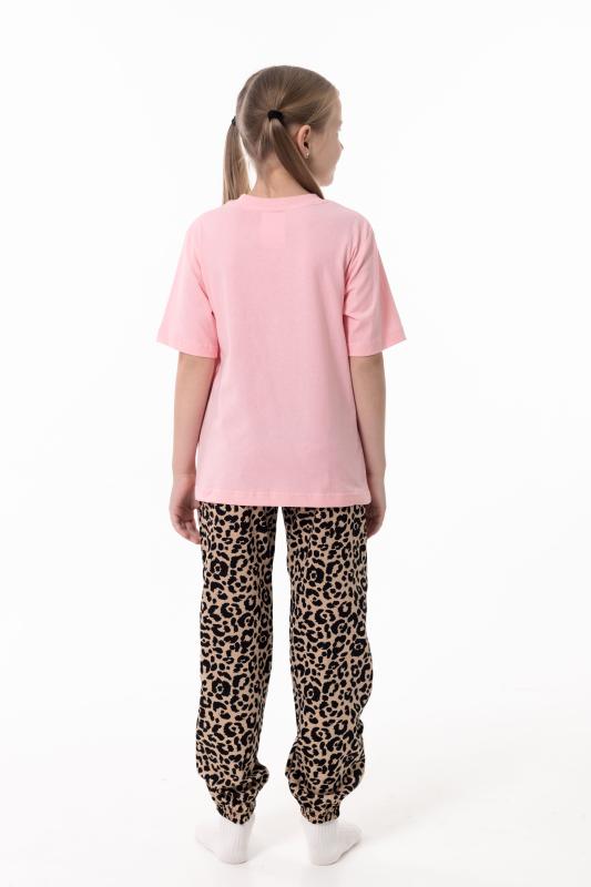 Пижама для девочек состоит из футболки и брюк и выполнена из натурального хлопкового полотна, приятного к телу и комфортного в носке. Футболка украшена принтом спереди и обеспечивает удобство во время сна и домашнего отдыха. Брюки выполнены с эластичным поясом, по низу предусмотрена резинка, обеспечивающая комфортную посадку. По бокам брюки дополнены удобными карманами. Модель не сковывает движений и отлично подойдёт для повседневного использования дома.