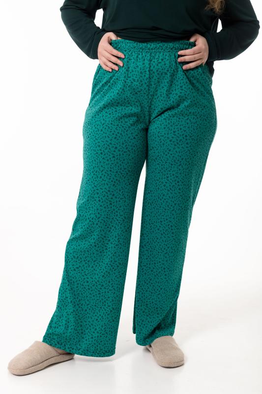 Брюки выполнены из однотонного флиса. С широким притачным поясом-кокеткой. С рельефными швами, обработанными декоративной отстрочкой. Размерный ряд: 40-56.