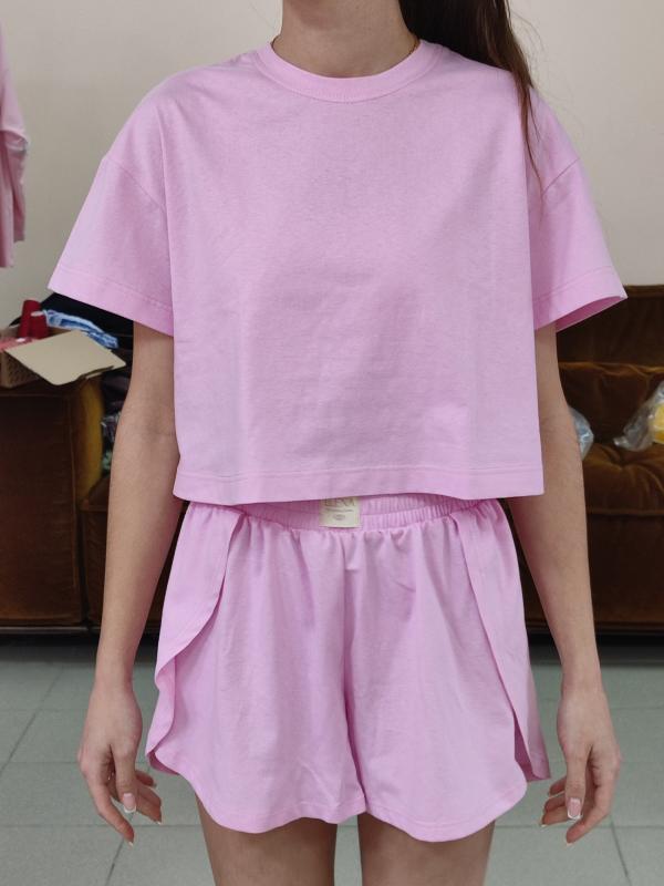 Удобная и стильная женская пижама выполнена из мягкой кулирки и состоит из шорт и футболки с коротким втачным рукавом. Футболка украшена принтом спереди и имеет круглый вырез горловины, аккуратно оформленный бейкой. Шорты оснащены боковыми карманами и имеют притачной пояс на резинке, что обеспечивает комфортную посадку и свободу движений. Отличный выбор для домашнего отдыха и комфортного сна.