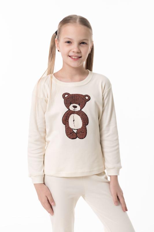 Детская пижама выполнена из мягкого и приятного к телу интерлока, который хорошо сохраняет тепло и подходит для повседневной носки. Лонгслив с манжетами по низу рукавов, обеспечивающими комфортную посадку. Спереди изделие украшено милым принтом в виде медвежонка. Брюки выполнены на удобной резинке, без карманов, не стесняют движений ребёнка во время сна и отдыха. Пижама отлично подойдёт для уютных вечеров и комфортного сна.