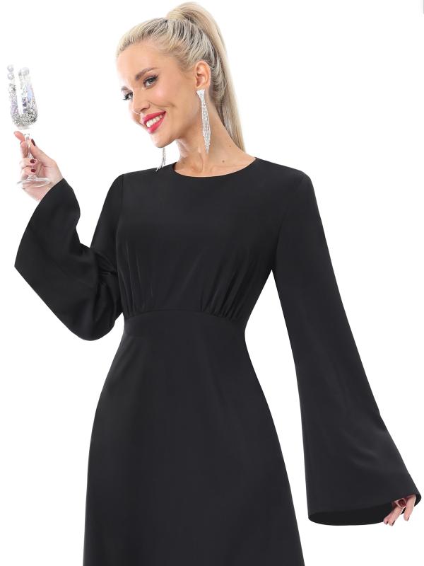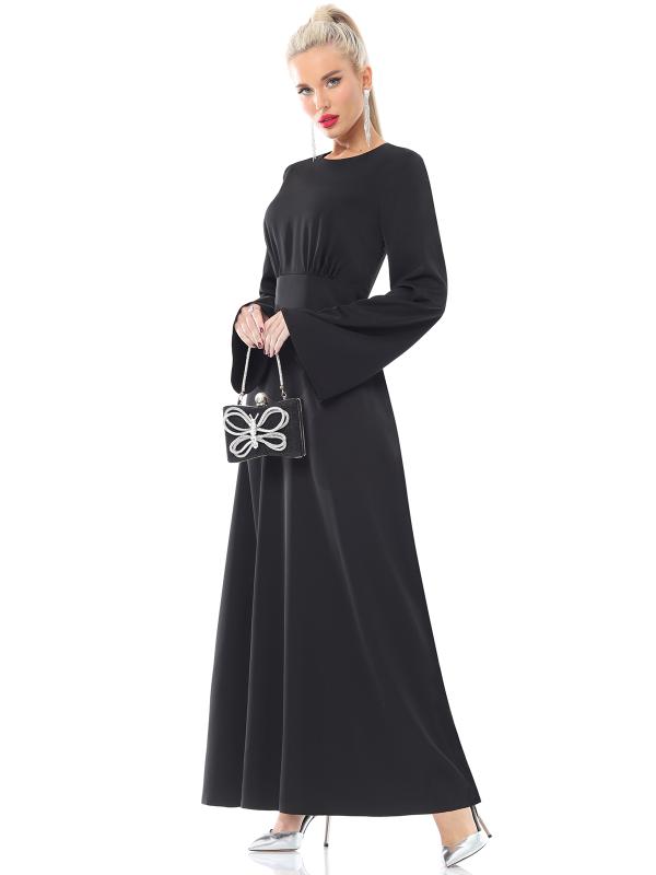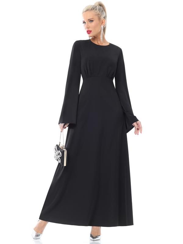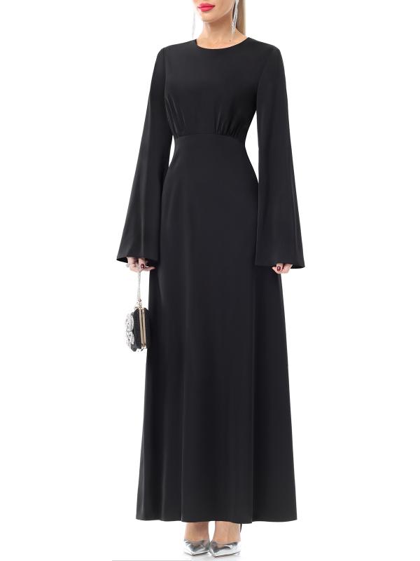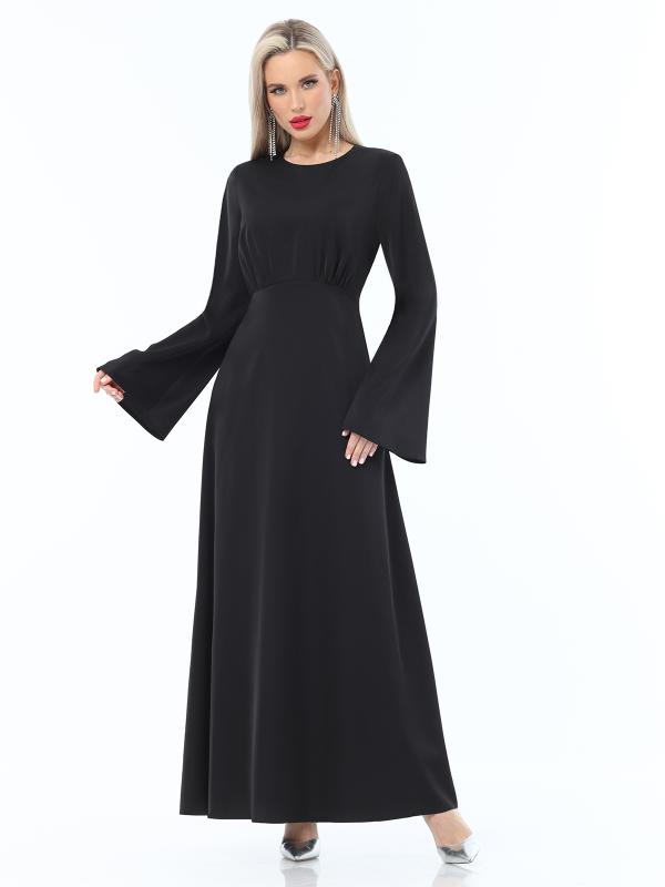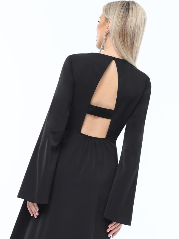Вечернее платье сочетает в себе нежность и элегантность. Приталенный крой, который подчеркивает элегантный силуэт. Длинные широкие рукава и открытая спина, добавляют платью изысканности и стильности, подчеркивают изящность фигуры. Универсальный цвет делает его универсальным и подходящим для разных стилей и случаев. Обмеры изделия Длина:44 размер - 89 см46 размер - 89 см48 размер - 90 см50 размер - 90 см52 размер - 91 см54 размер - 91 см Характеристики Комплектация: Платье