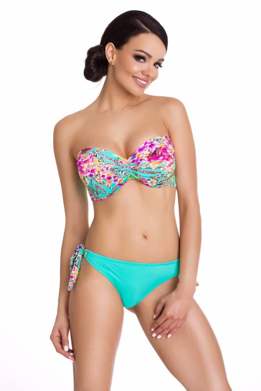 МОДЕЛЬ 305 - прекрасно приподнимает, демонстрирует и поддерживает бюст, а регулируемые бретели и застежка на спине обеспечивают комфортное ношение. Классические трусы с яркими принтами и рюшами по бокам сделают фигуру стройнее. Твердая чашка пуш-ап на косточках, бретели регулируются, на спине застежка.