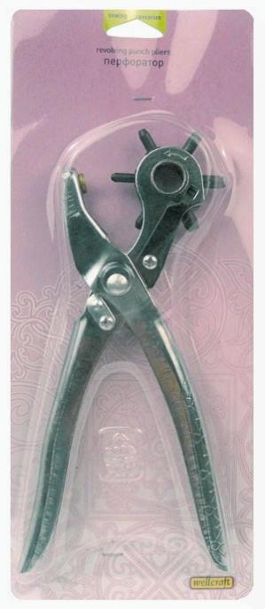 Ручные универсальные щипцы - пробойник. Сделаны из прочного металла, удобны в работе. Ручки анатомической формы обработаны нескользящим покрытием. Используют для плотных тканей, кожи и кожзама .Удобное вращающееся колесо с насадками разного диаметра от 2,5 до 5 мм.( Диаметр: 2.5, 3, 3.5, 4, 4.5, 5мм). Острие не нуждается в заточке. Щипцы - пробойник подходит для использования в быту. Работа с пробойником: . Снимите ручки с предохранителя-фиксатора. Вращая колесо против часовой стрелки, установите насадку необходимого Вам диаметра. Положите используемый материл между насадкой и ударным диском. Плотно сожмите ручки щипцов. Просьба не использовать в работе с тонкой тканью!