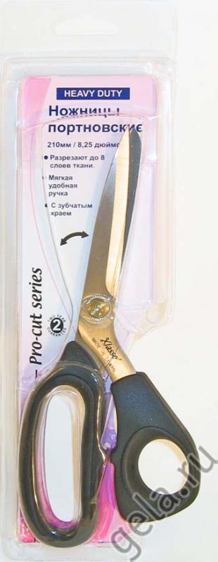 с микро-заточкой, длина 21см. Микро-заточка предотвращает сползание сложных для кроя тканей, таких как шелк, сатин, шифон. У ножниц мягкие, комфортные ручки.