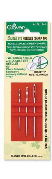 Иглы с двойным ушком для шитья двумя нитями разных цветов.241 - Иглы с двойным ушком с острым кончиком, комплект 3 шт. В комплект входят иглы с двойным ушком № 15, 17 , 20.242 - Иглы с двойным ушком с тупым кончиком, комплект 3 шт. В комплект входят иглы с двойным ушком № 15, 17 , 20.243 - Иглы тонкие с двойным ушком с острым кончиком №22, 24. Комплект 4 шт. В комплект входят иглы №22 - 2 шт. №24 - 2 шт.244 - Иглы тонкие с двойным ушком с тупым кончиком №22, 24. Комплект 4 шт. В комплект входят иглы №22 - 2 шт. №24 - 2 шт.