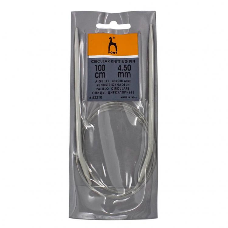 Циркулярные спицы. Материал спиц - алюминий, номера 8, 9, 10 - пластик. Индийская фирма «Needle Industries (India) Limited» - мировой лидер в производстве швейно - вязальных принадлежностей для вязания и рукоделия и игл, известных под торговой маркой «PONY». Отличное качество продукции фирмы PONY основано на высоких технологиях. Все спицы упакованы в красивую и удобную упаковку.