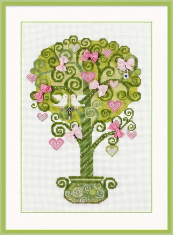 Мулине Anchor, 24 цвета, канва 14 Aida Zweigart белая. Цветная схема.В набор входит: бисер (1 вид), фетр (1 вид), лента (1 вид) и 2 иглы.