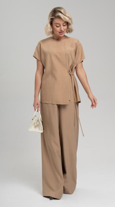 - универсальная и одновременно стильная модель, комфортно садится на любую фигуру. Пришивные тонкие завязки чуть выше талии позволят создавать разные силуэты на изделии.