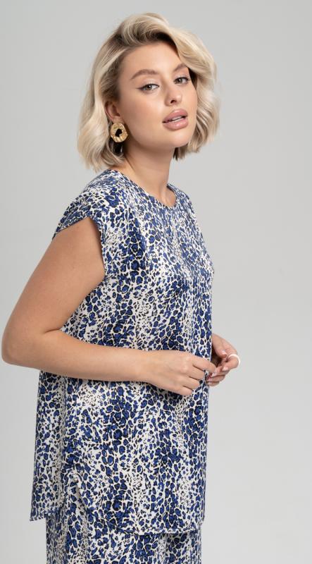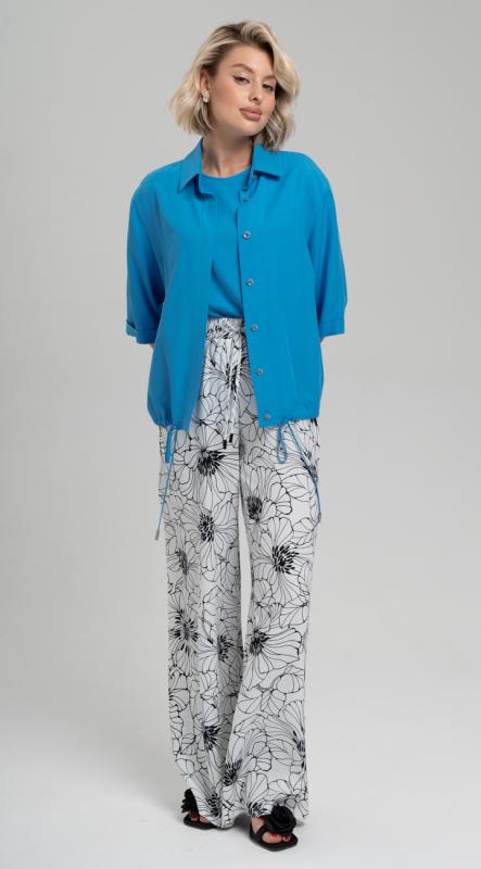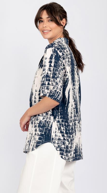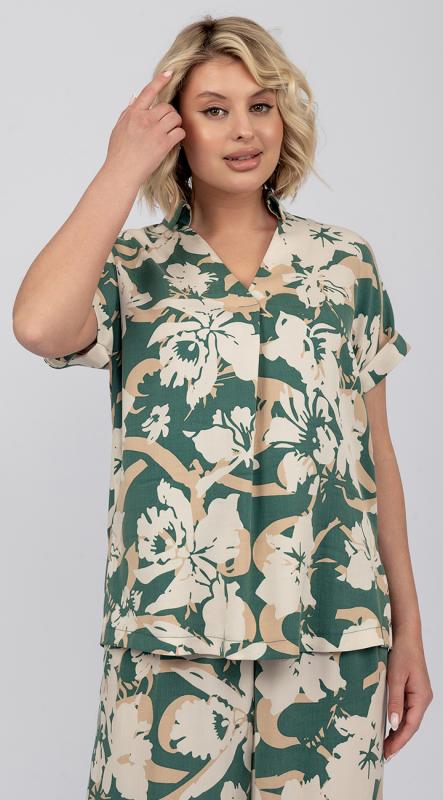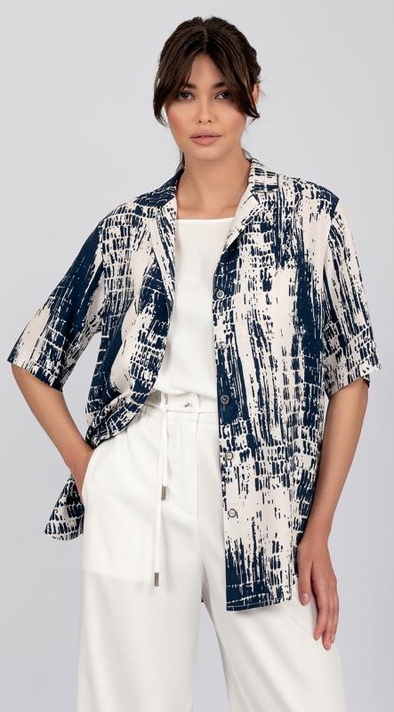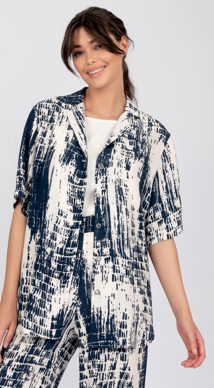 Эффектная блузка прямого силуэта с английским воротником и коротким рукавом из легкой вискозы с оригинальным принтом- исполнена с учетом всех последних тенденций моды и прекрасно подойдет для создания образов в стиле casual. Уникальное сочетание стиля и комфорта. Создавайте total look, комбинируя блузку с брюками 1.1463-10 из новой коллекции OPEN FASHION.