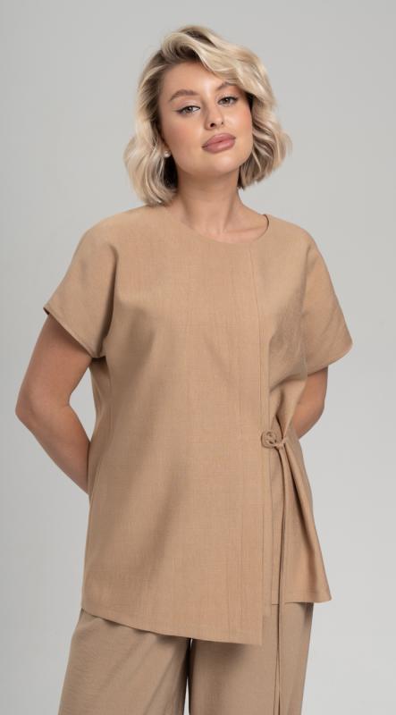 Блуза свободного силуэта с оригинальным кроем из струящейся вискозы с эффектом "