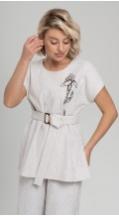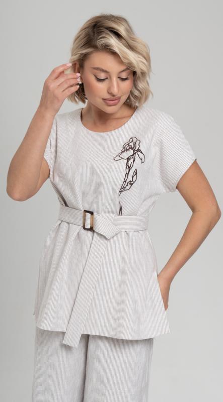 Стильная блуза свободного кроя со спущенной линией плеча из хлопка в тонкую фактурную полоску в сочетании с авторским термотрансфером – идеально подойдет для создания как повседневного, так и вечернего образа. Завершит образ и подчеркнет женственность съемный пояс на пряжке.