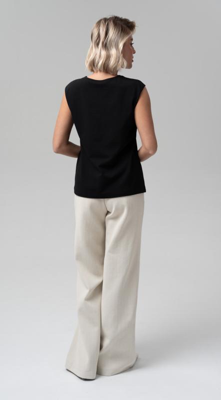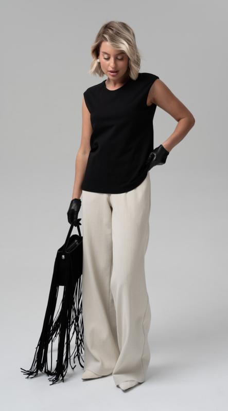 Базовый топ прямого кроя с оригинальной спущенной линией плеча - позволит выглядеть безупречно и отлично впишется как в деловые, так и в повседневные луки в любой цветовой гамме.