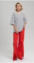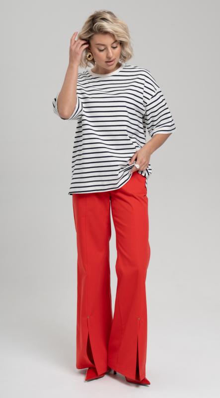 Объемная футболка с разрезами в боковых швах из хлопка в полоску – станет незаменимой вещью в гардеробе и отлично будет сочетаться как с джинсами, так и с брюками из новой коллекции. Универсальный прямой крой со спущенным плечом - подходит для любого типа фигуры. Широкий рукав комфортной длины ниже локтя.