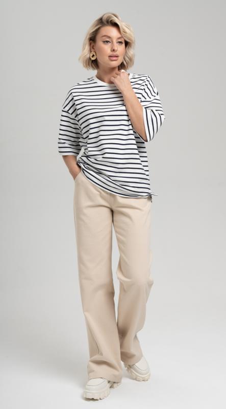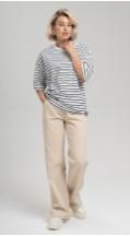 Лонгслив свободного кроя со спущенной линией плеча из трикотажного жаккарда в полоску - базовый предмет женского гардероба для создания ультрамодных многослойных образов. Комфортный рукав полной длины. В комплекте авторская брошь ручной работы.