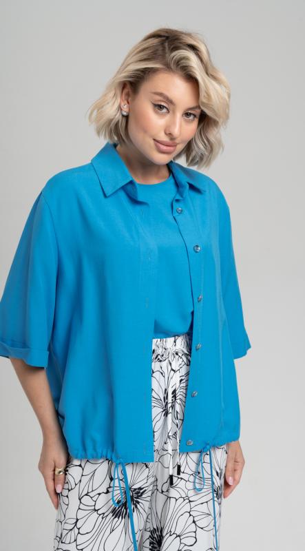 Рубашка- трансформер свободного кроя из костюмной поливискозы - отлично впишется в повседневные образы и никого не оставит равнодушным! Съемный воротник-галстук при желании может стать поясом. Добавит эксклюзивности персонализированная кнопка с гравировкой инициалов OPEN FASHION в сочетании с тесьмой. Модель можно носить как первый слой или поверх футболки или топа. Рукав полной длины. Застежка на кнопки.