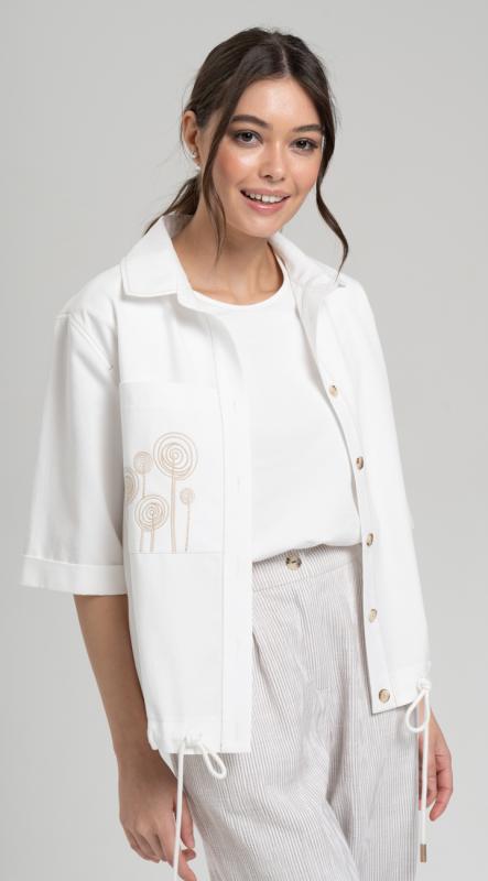 - великолепным образом дополнит базовый летний гардероб. Оригинальный крой в сочетании с отделочной тесьмой подарят обладательнице хорошее настроение на целый день. Застежка на петли и пуговицы.