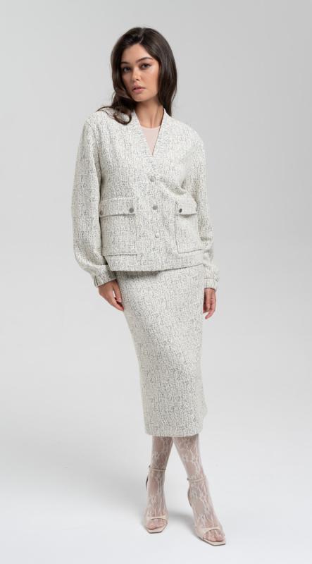 Прямая юбка длиной mini с классической шлицей по спинке из фактурного твида - сможет с легкостью стать стильной̆ альтернативой̆ для привычного образа CASUAL. Потайная молния в среднем шве юбки. Юбка выполнена на подкладе.