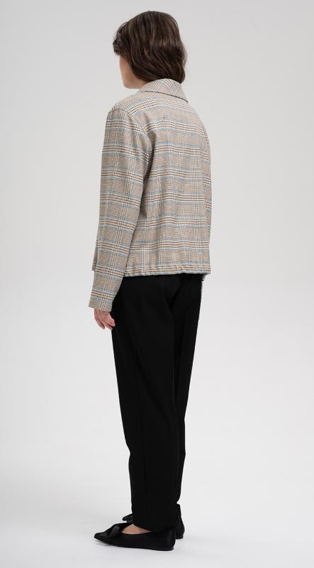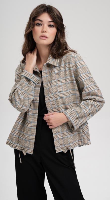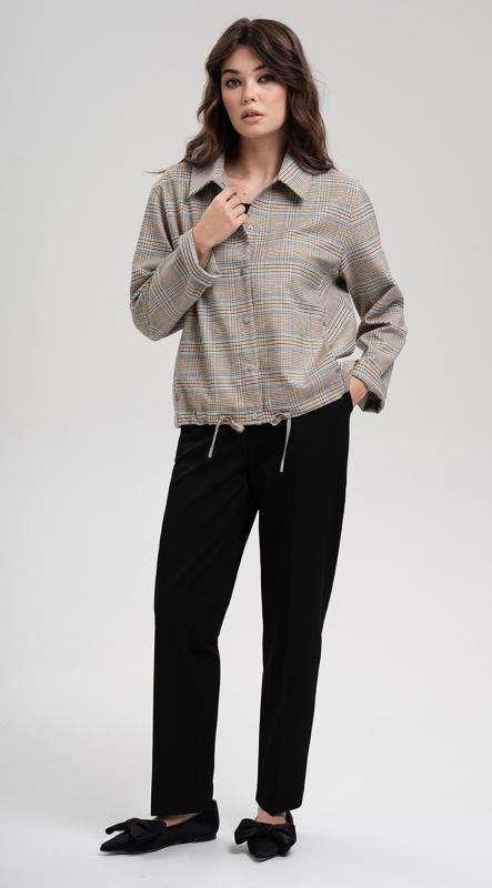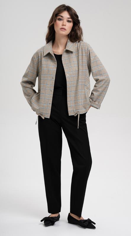 Бомбер прямого силуэта из костюмной поливизкозы в яркую клетку с карманами и кулисой по низу - станет, несомненно, изюминкой осенне-зимнего гардероба. Широкий рукав рубашечного кроя имеет широкую подгибку что позволяет завернуть его на мягкую манжету. Застежка на кнопки.