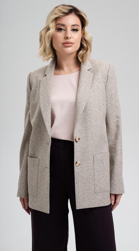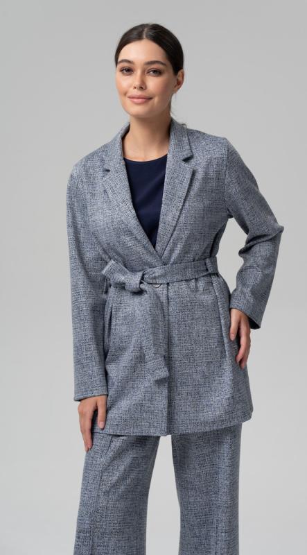 Удлиненный жакет свободного кроя с английским воротником, со спущенной линией плеча, с накладными карманами с клапаном из костюмной поливискозы с меланжевым переплетением - поможет создать стильный и уверенный образ. В предстоящем сезоне стилисты рекомендуют добавлять жакет в абсолютно любой образ от классического до вечернего. Жакет можно носить отдельно или в комплекте с брюками или юбкой из той же коллекции для монохромного образа в духе последних тенденций. Рукав рубашечного кроя полной длины имеет широкую подгибку, что позволяет собрать его или завернуть на мягкую манжету. Жакет дополнен съемным поясом. Застежка на петли и пуговицы.