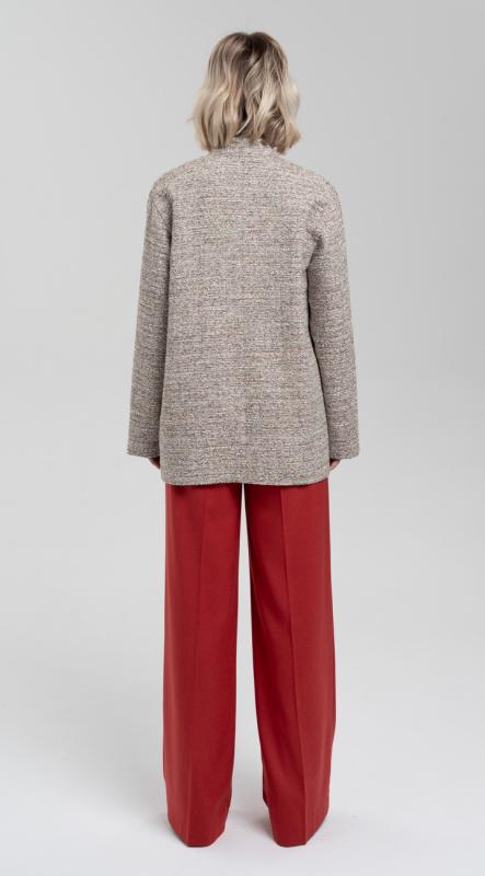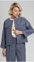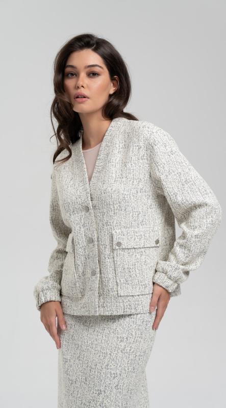 Укороченный жакет свободного кроя с резиной по низу спинки из костюмной поливискозы с меланжевым переплетением - станет ярким акцентом любого аутфита. Комфортный крой сочетает в себе элементы классического и спортивного стиля, создавая при этом ощущение "