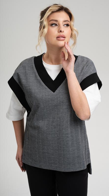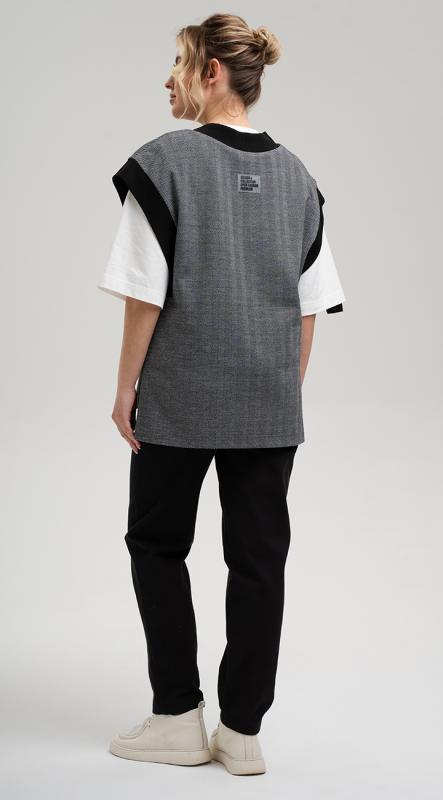 Жилет прямого покроя с V-образным вырезом, со спущенной линией плеча и разрезами в боковых швах из трикотажного полотна в нескучный принт "