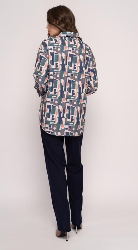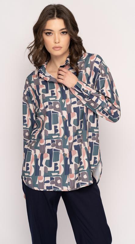 Эффектная рубашка свободного кроя со спущенной линией плеча, с воротником рубашечного кроя из вискозы с авторским принтом - подарит вам комфорт на весь день и добавит ярких красок в повседневные образы. Рукав полной длины на притачной манжете. Застежка на петли и пуговицы.