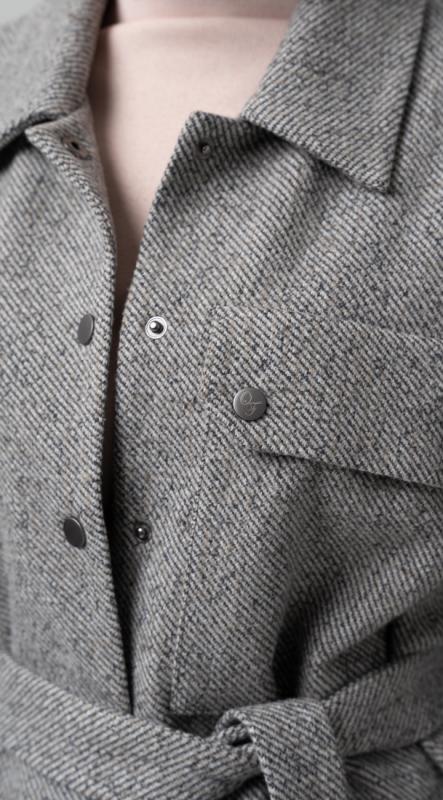 со всеми вещами. Свободный силуэт и спущенная линия плеча делают ее особенно уютной и комфортной. Широкий рукав полной длины. Добавит эксклюзивности персонализированная кнопка на клапане с гравировкой инициалов OPEN FASHION. В комплекте съёмный пояс из основной ткани. Застёжка на кнопки.