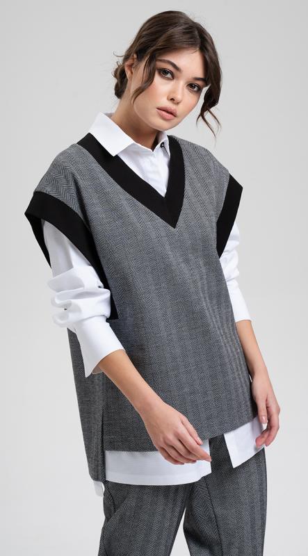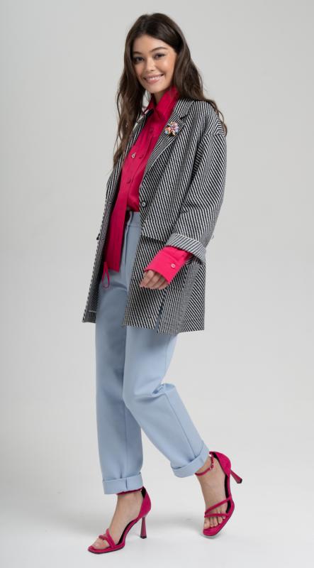 - будет органично смотреться как в повседневном образе, так и в офисном, создавая особенное настроение. Добавит эксклюзивности фирменная нашивка от OPEN FASHION. Брюки из комплекта:1.1449-10