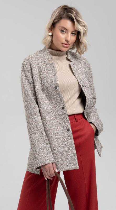 - универсальная и одновременно стильная модель, комфортно садится на любую фигуру. Отличный способ оживить формальный гардероб. Застежка на петли и пуговицы. Рукав полной длины на притачной манжете.