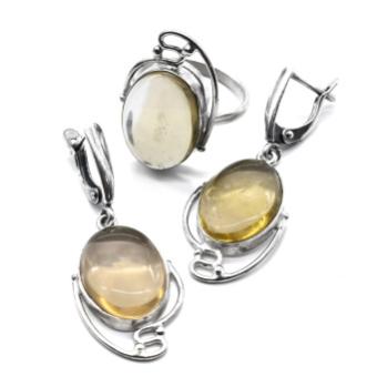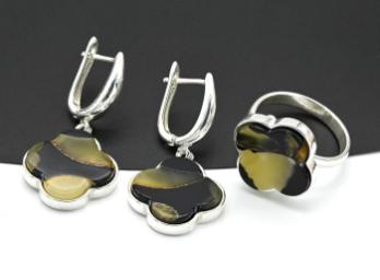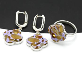•Комплект с натуральной янтарной крошкой, за основу взята полимерная смола.