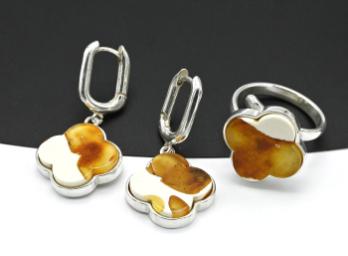 •Комплект с натуральной янтарной крошкой, за основу взята белая полимерная смола.