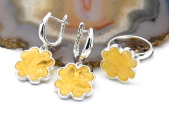 •Комплект с натуральной янтарной крошкой, за основу взята полимерная смола.